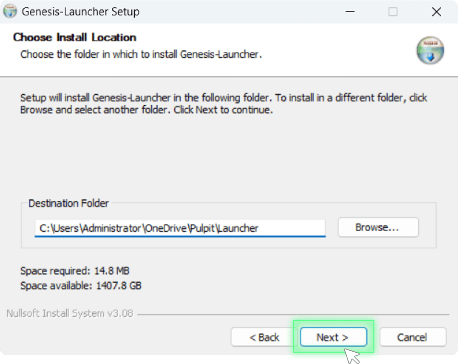 2: Wybierz miejsce na dysku, gdzie Genesis ma zamieszkać.