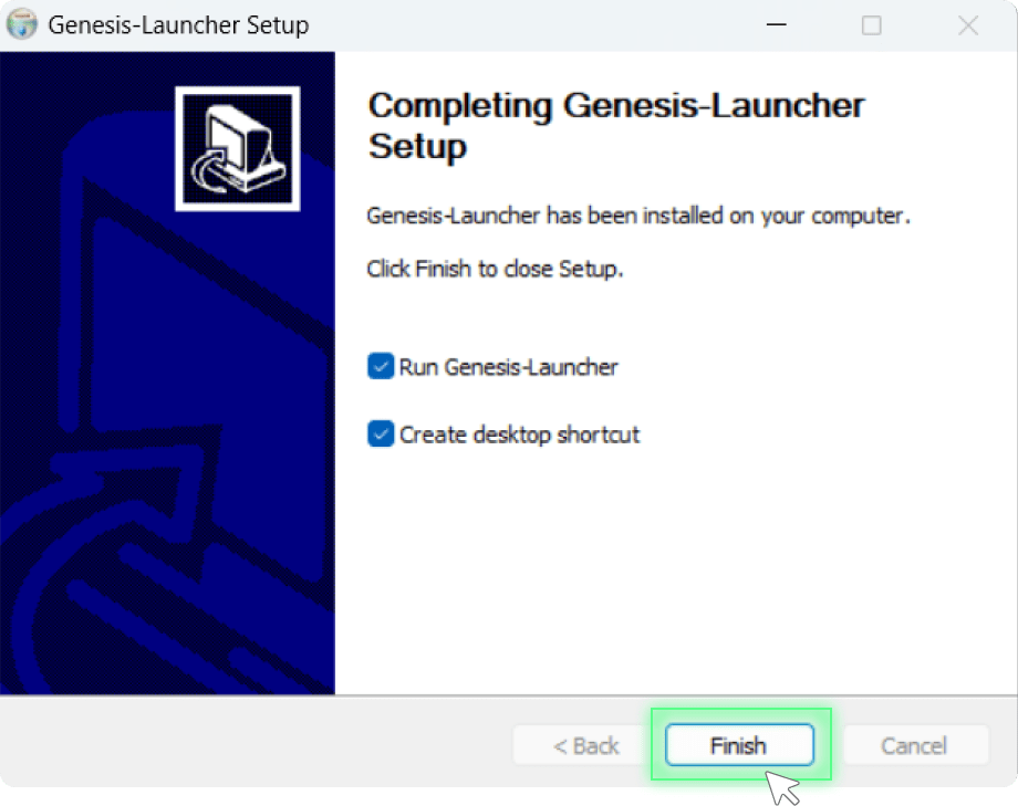 Kliknij prawym przyciskiem myszy “Genesis-Launcher.exe” i wybierz “Uruchom jako administrator”, aby rozpocząć instalację.
