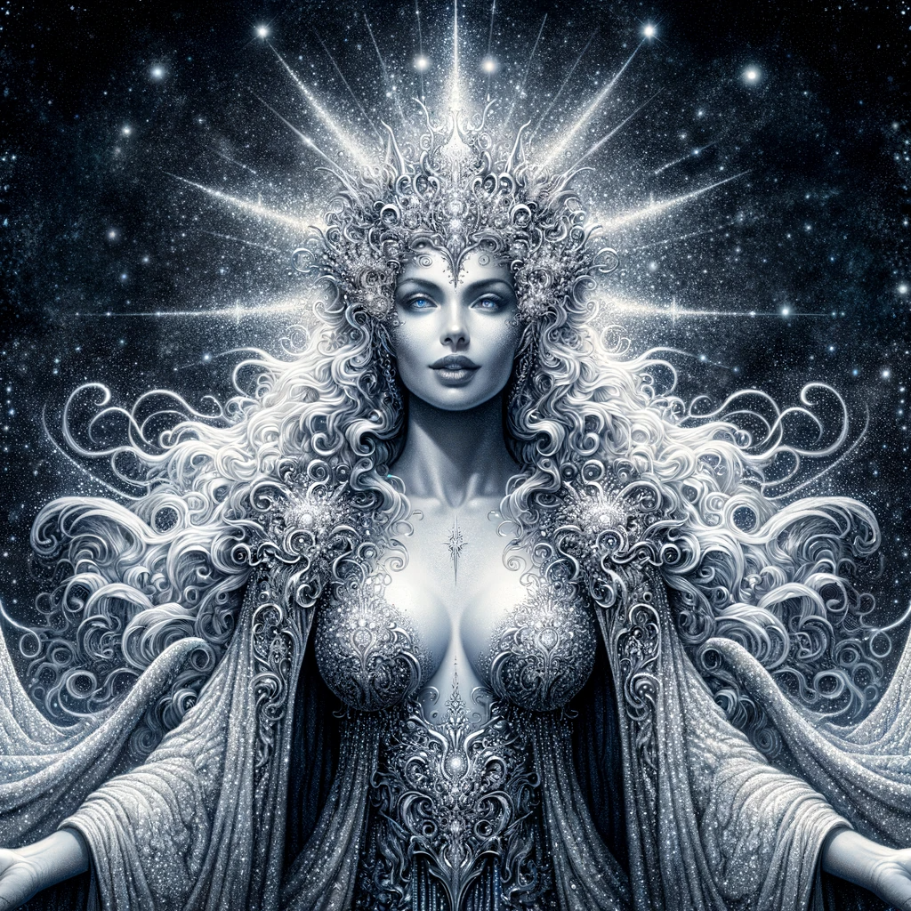 Księżyc otoczony gwiazdami, symbolizujący jej władzę nad nocą.